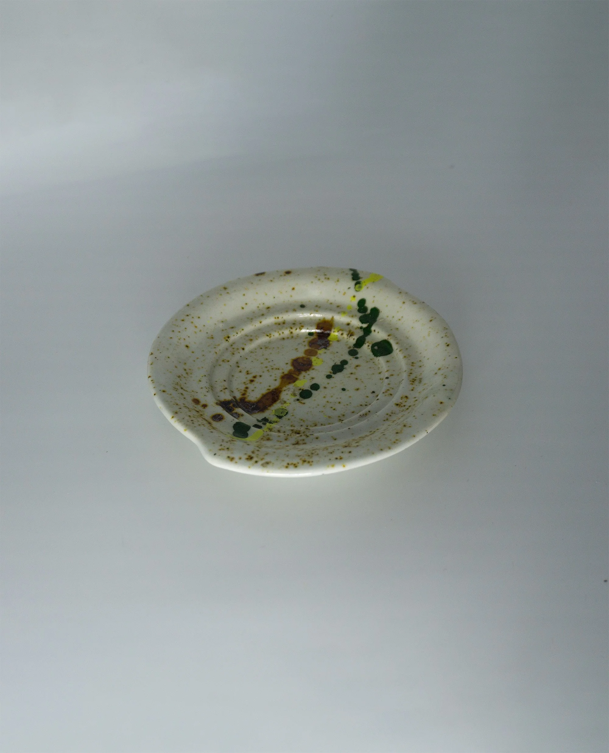 Plato de cafe asimétrico hecho a mano por el obradoiro Artesania & Signos. Cerámica vitrificada a alta temperatura